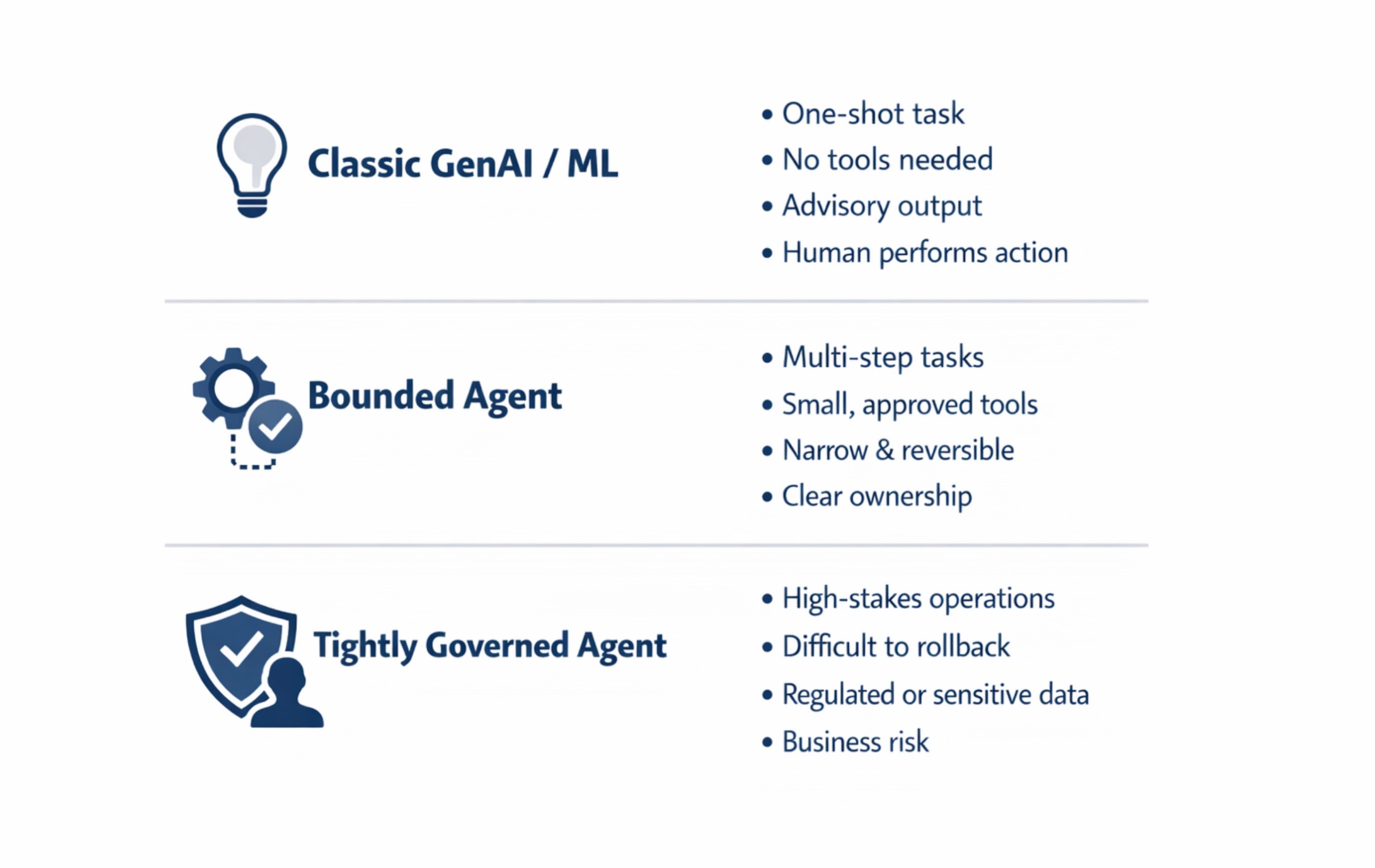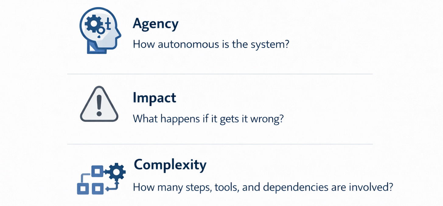 Agentic AI usually makes sense when three factors stay controlled: